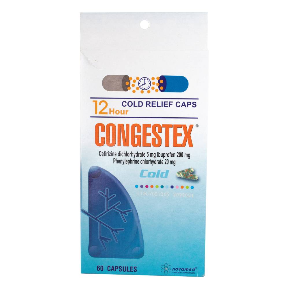 ¡ALIVIA LOS SÍNTOMAS DEL RESFRIADO COMÚN CON CONGESTEX! ESTAS CÁPSULAS CONTIENEN UNA COMBINACIÓN DE INGREDIENTES QUE AYUDAN A REDUCIR LA CONGESTIÓN NASAL, EL DOLOR DE CABEZA Y LA FIEBRE. SU FÓRMULA SUAVE ES PERFECTA PARA USO DIARIO. ¡NO ESPERES MÁS Y ASEGÚRATE DE TENER CONGESTEX EN CASA PARA MANTENER A TU FAMILIA SALUDABLE!
