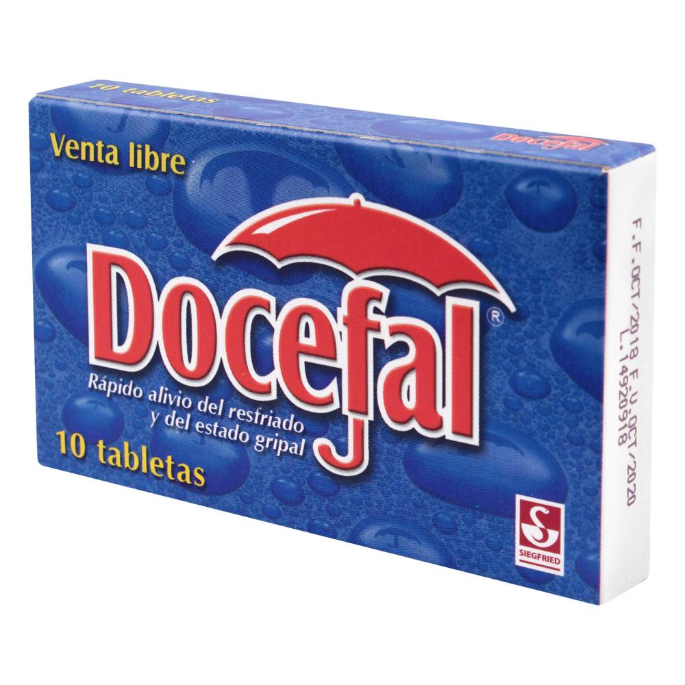 ¡ALIVIA LOS SÍNTOMAS DEL RESFRIADO COMÚN CON DOCEFAL! ESTAS TABLETAS CONTIENEN ACETAMINOFÉN, FENILEFRINA, CAFEÍNA Y CLORFENIRAMINA, IDEALES PARA TRATAR EL DOLOR DE CABEZA, CONGESTIÓN NASAL, FIEBRE Y MALESTAR GENERAL. SU FÓRMULA SUAVE ES PERFECTA PARA USO DIARIO. ¡NO ESPERES MÁS Y ASEGÚRATE DE TENER DOCEFALO EN CASA PARA MANTENER A TU FAMILIA SALUDABLE!