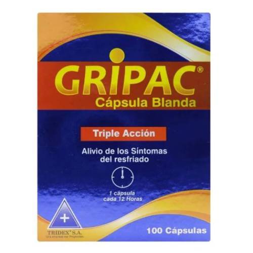 ¡ALIVIA LOS SÍNTOMAS DEL RESFRIADO COMÚN CON GRIPAC! ESTAS CÁPSULAS CONTIENEN ACETAMINOFÉN, CLORFENAMINA Y FENILEFRINA, IDEALES PARA TRATAR LA FIEBRE, DOLOR DE CABEZA, DOLOR DE GARGANTA, DOLOR CORPORAL Y CONGESTIÓN NASAL. SU FÓRMULA SUAVE ES PERFECTA PARA USO DIARIO. ¡NO ESPERES MÁS Y ASEGÚRATE DE TENER GRIPAC EN CASA PARA MANTENER A TU FAMILIA SALUDABLE!
