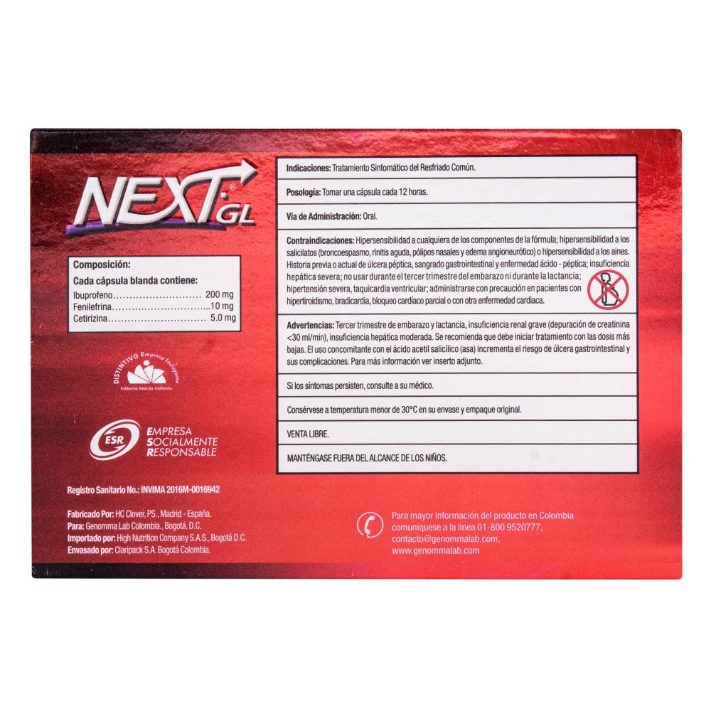 ¡ALIVIA LOS RESFRIADOS CON NEXT GL GRIPE! ESTAS CÁPSULAS BLANDAS SON IDEALES PARA REDUCIR LOS SÍNTOMAS DEL RESFRIADO COMÚN, PROPORCIONANDO UN ALIVIO RÁPIDO Y EFECTIVO. SU FÓRMULA SUAVE ES PERFECTA PARA USO DIARIO. ¡PRUEBA NEXT GL GRIPE HOY MISMO Y MANTÉN A TU FAMILIA SALUDABLE!