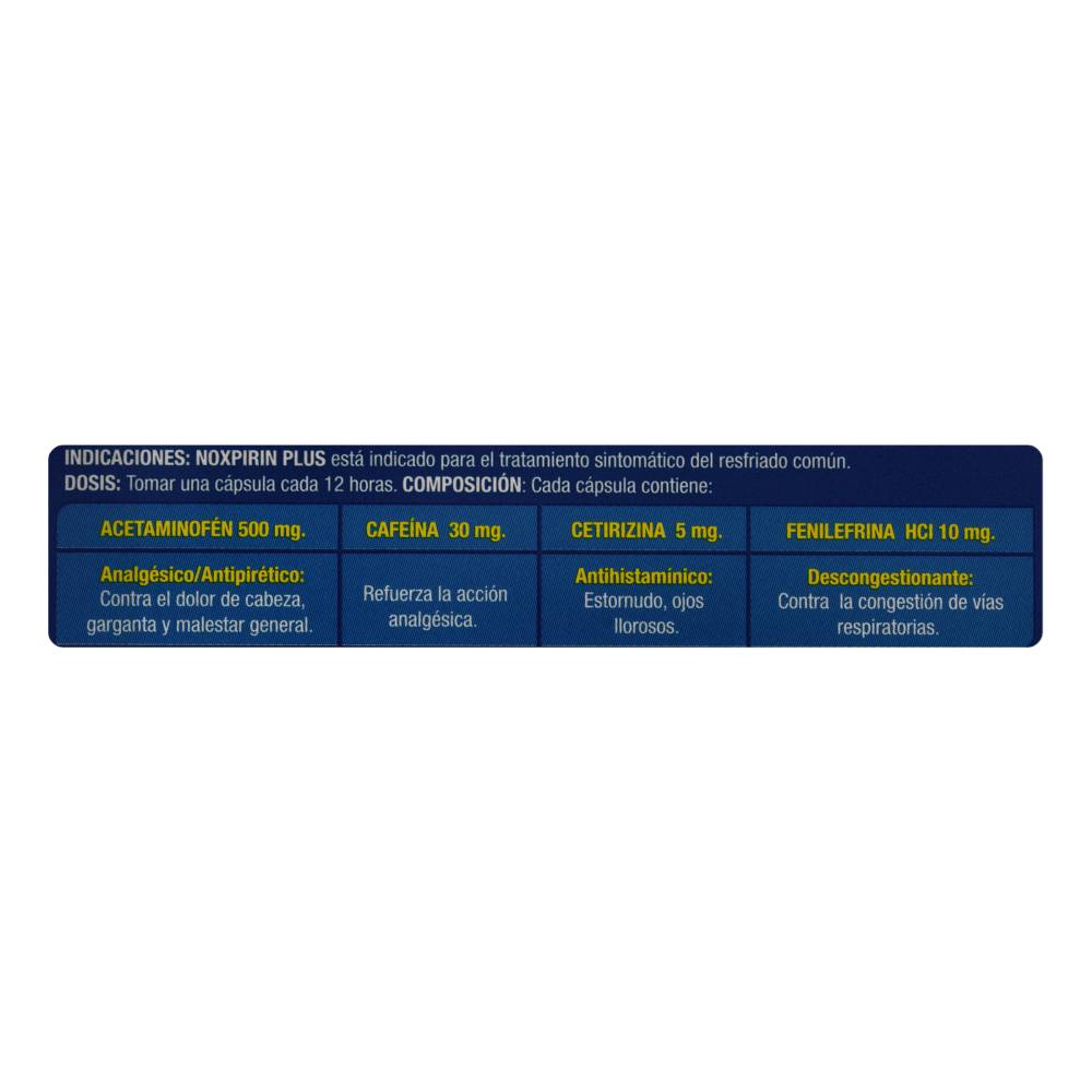 MANTÉN A TUS SERES QUERIDOS PROTEGIDOS CON NOXPIRIN PLUS. ESTAS CÁPSULAS SON IDEALES PARA REDUCIR LOS SÍNTOMAS DEL RESFRIADO COMÚN, PROPORCIONANDO UN ALIVIO RÁPIDO Y EFECTIVO. SU FÓRMULA SUAVE ES PERFECTA PARA USO OCASIONAL. ¡NO ESPERES MÁS Y ASEGÚRATE DE TENER NOXPIRIN PLUS EN CASA!