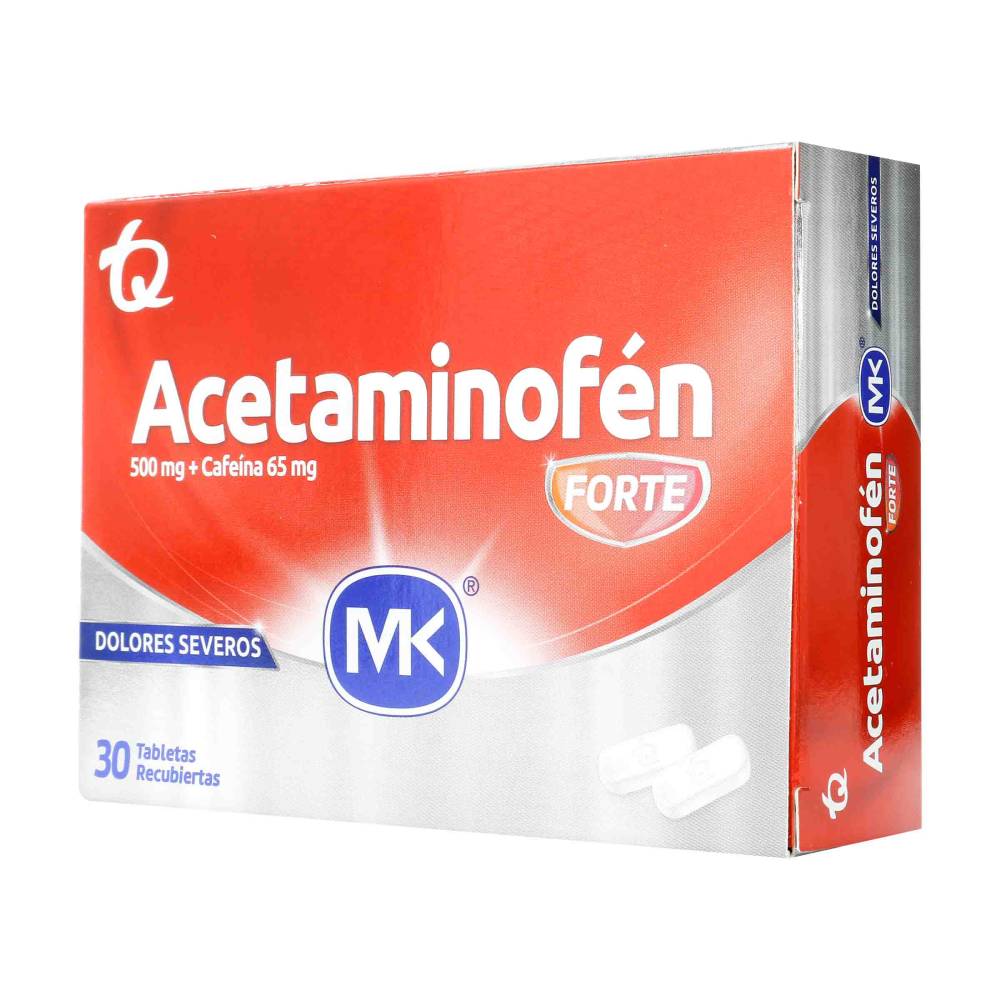 Acetaminofén Forte 500 mg Cafeina 65 mg 30 Tabletas MK
