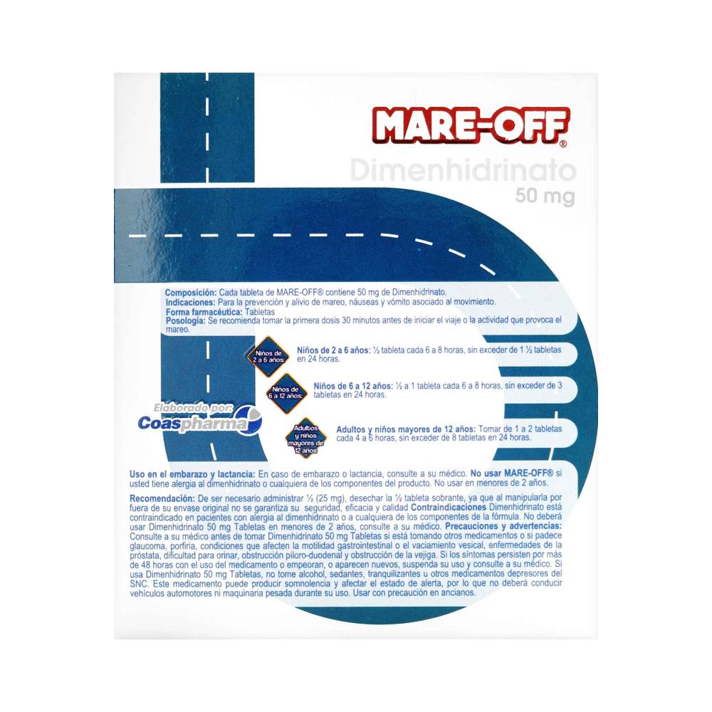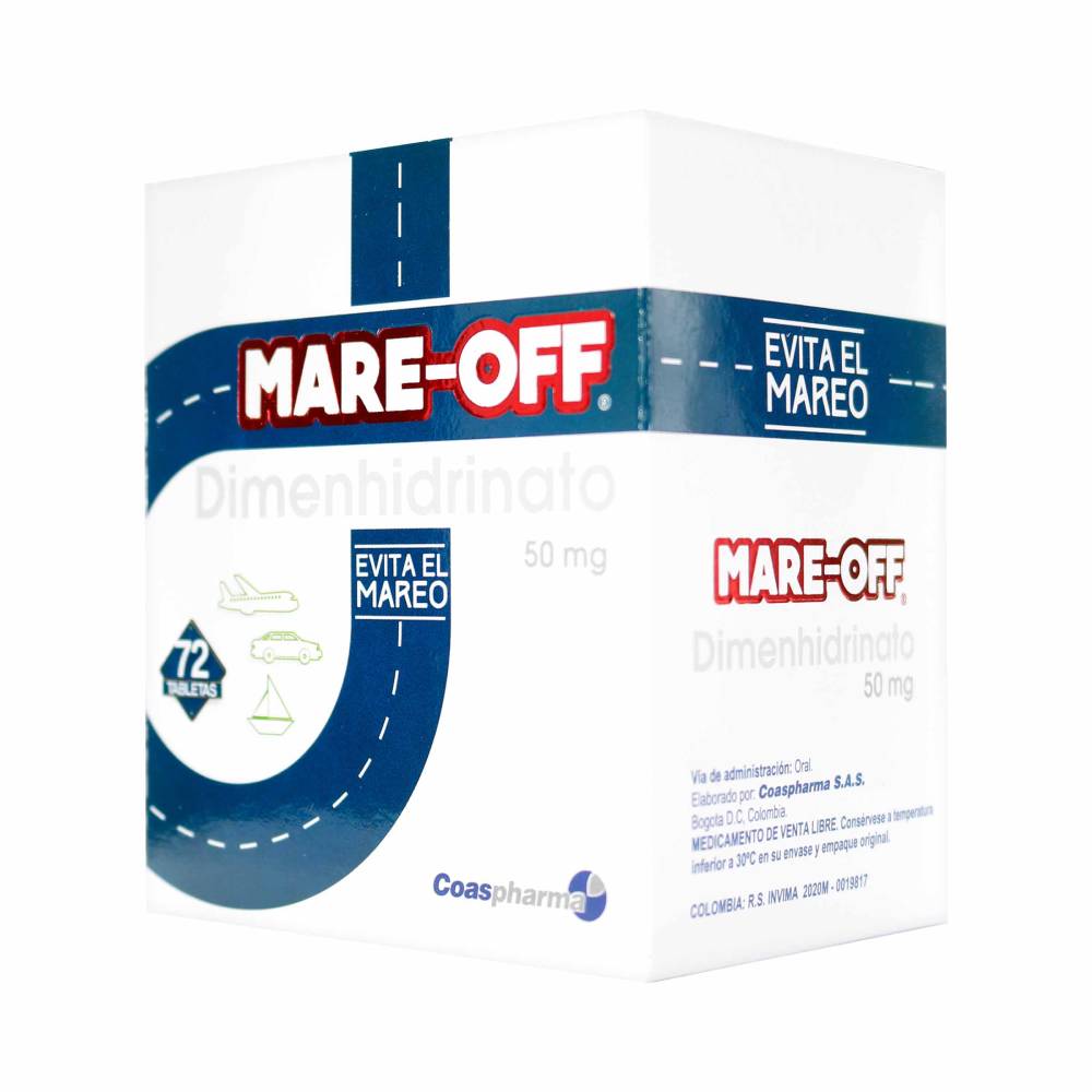 Recibes Mare Off 50 mg Caja 72 Tabletas Evitar El Mareo Coaspharma