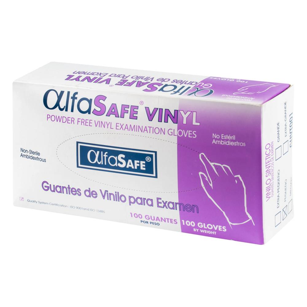 Guante Examen Vinilo Alfasafe 100 Unidades