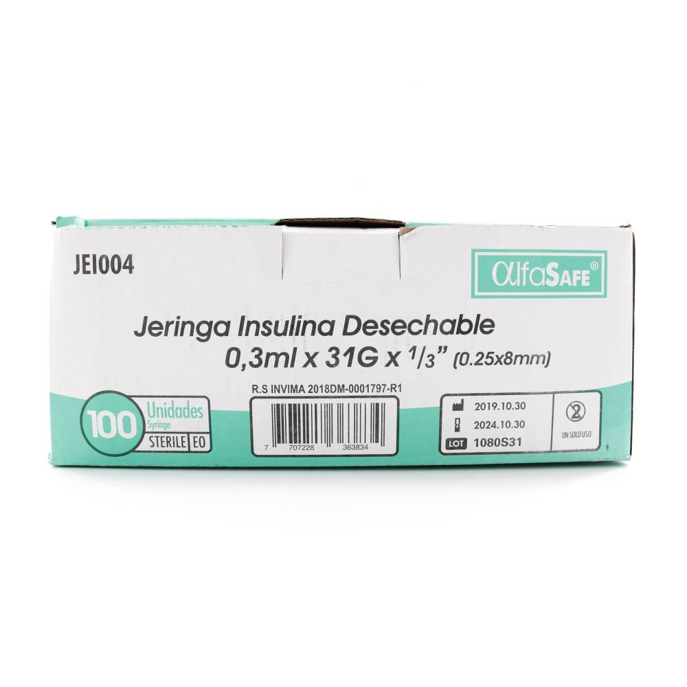 Jeringa Insulina 0.3 Ml 100 Unidades Alfasafe