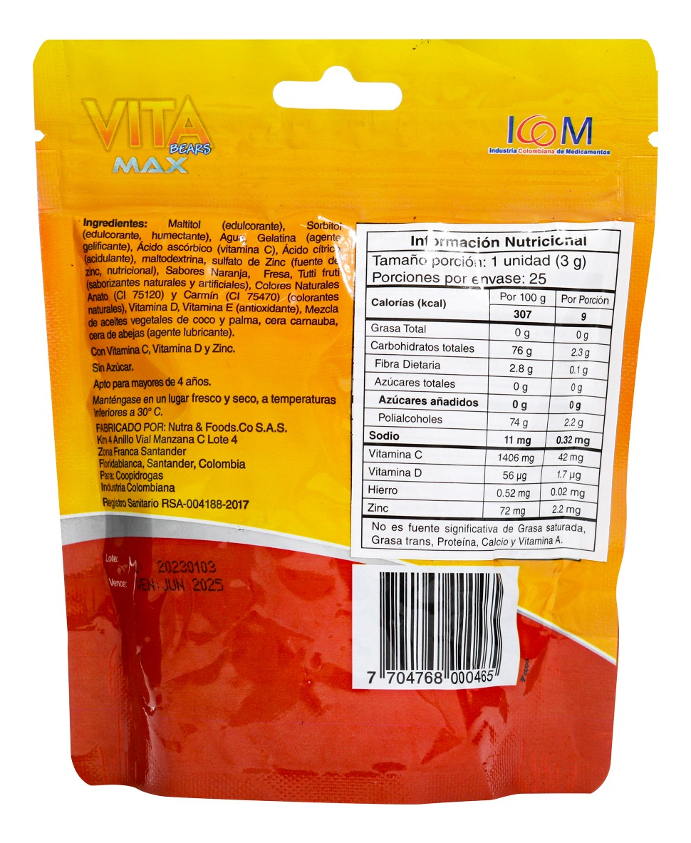 Gomas Vitamina C Vita Bears Max 75g 25 Unidades