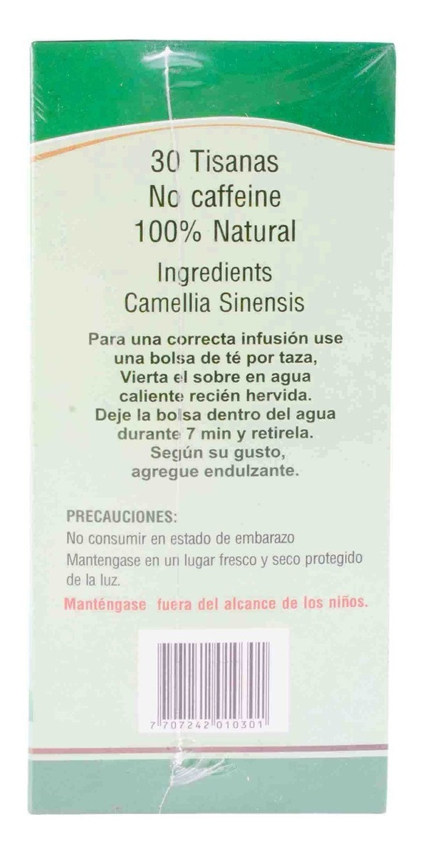 Te verde 100% natural, Para una correcta infusión use una bolsa de te por taza, Vierta el sobre en agua caliente recién hervida.