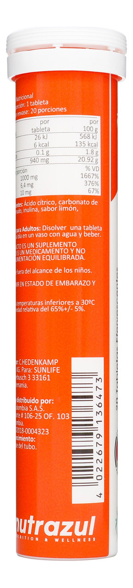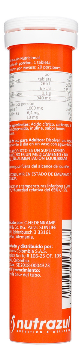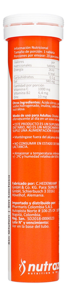 Vitamin C + Zinc + B2 Nutrazul 20 Tabletas Efervescentes