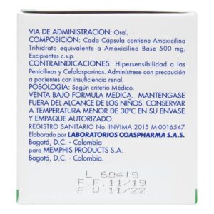 Amoxicilina 500 mg 100 Cápsulas Coaspharma